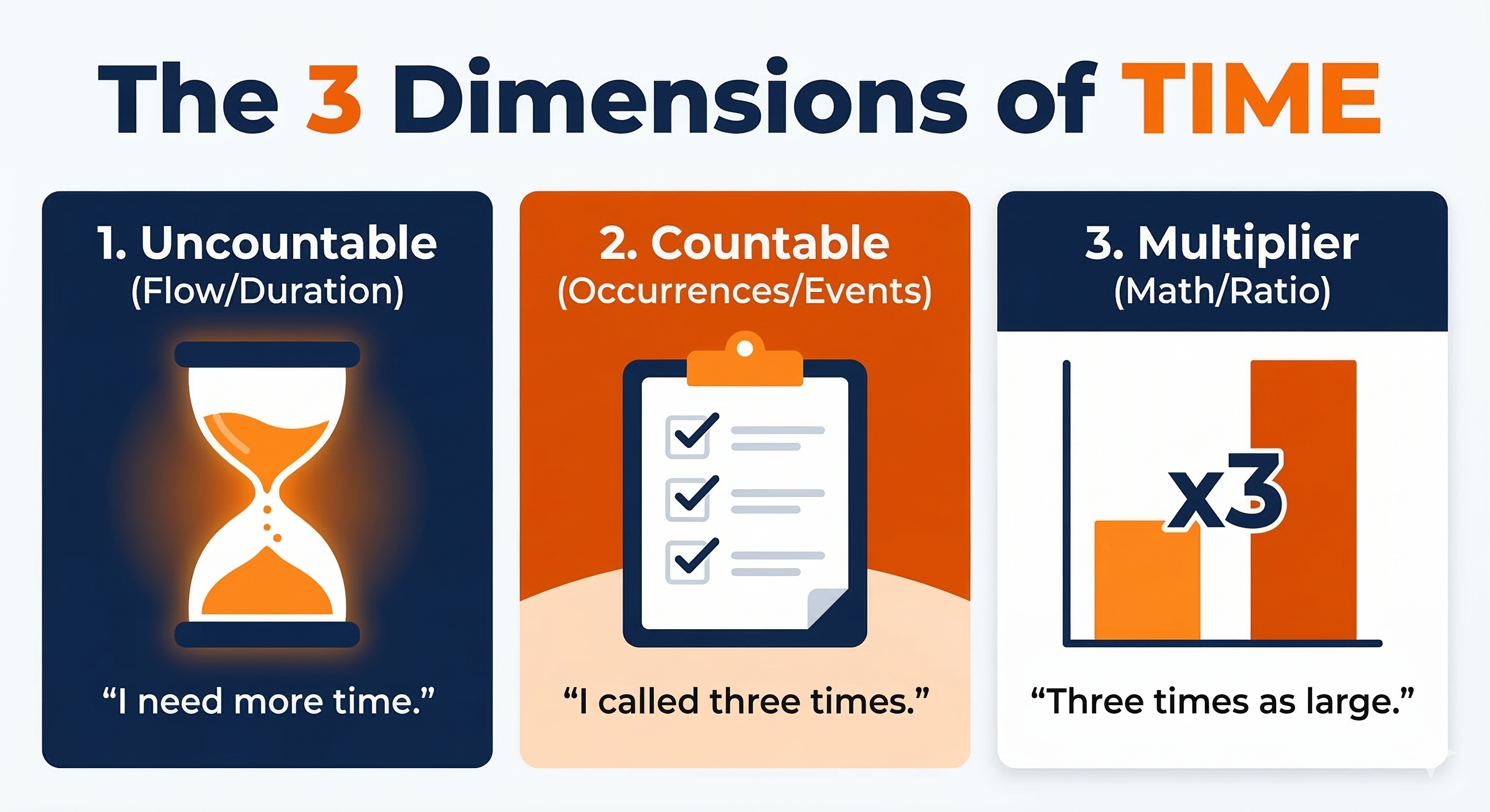 time 앞에 a, first, last, three 같은 수식어가 붙으면 더 이상 흐르는 시간이 아닙니다. 특정한 경험의 '횟수'나 사건이 일어난 구체적인 '순간/경우'를 가리킵니다.