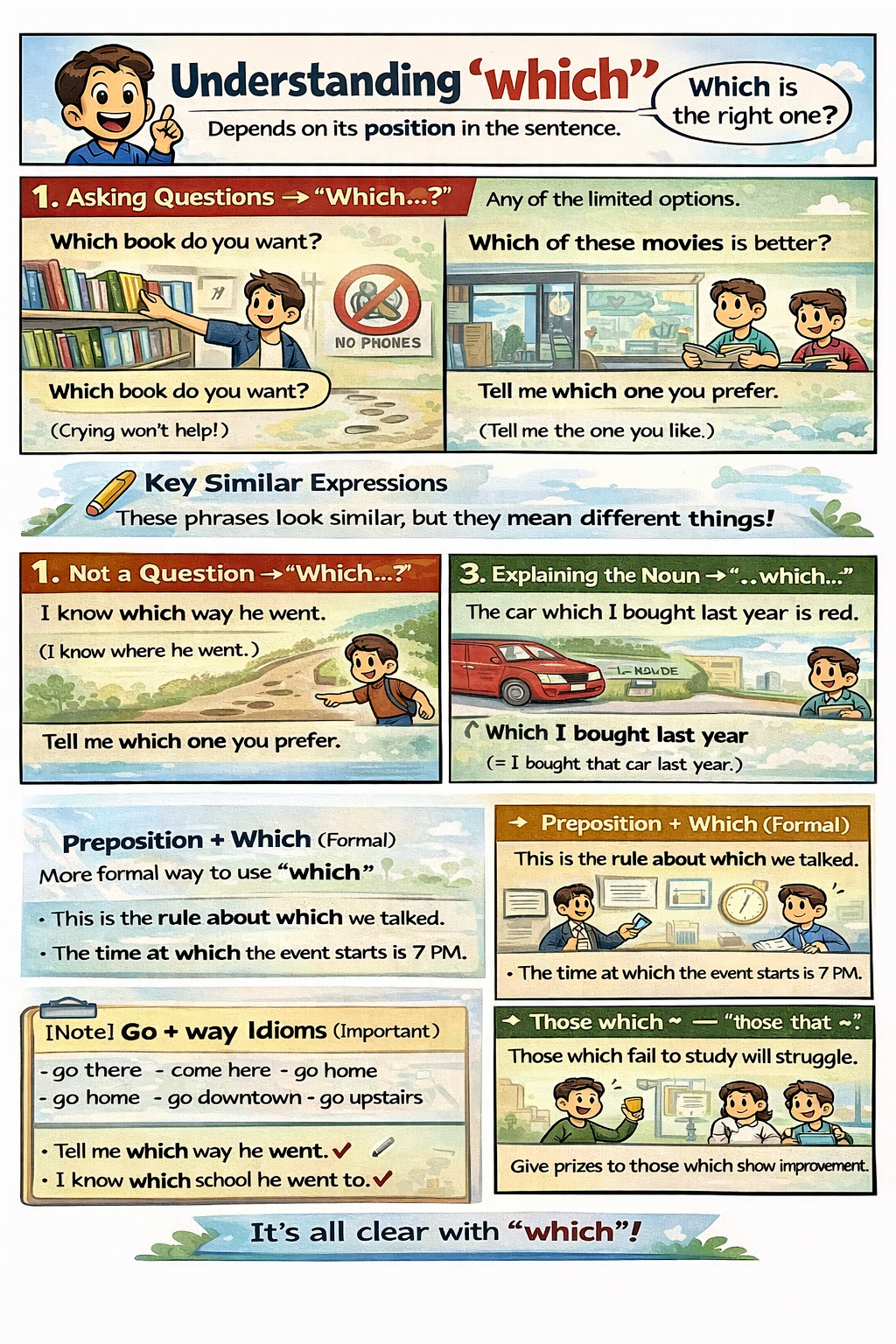 문장에서의 위치에 따라 which의 사용법과 뜻이 달라집니다.