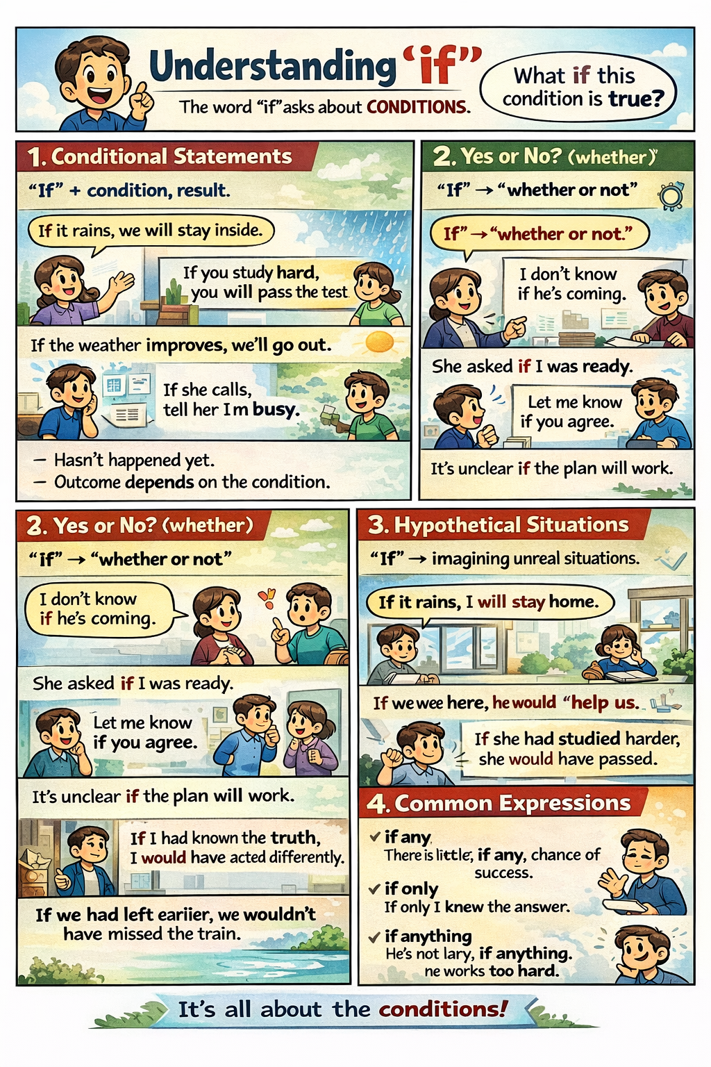 if는 조건뿐 아니라 사실인지 아닌지를 묻는 구조에서도 사용됩니다. 이때의 if는 whether ~ or not과 의미가 같습니다.
